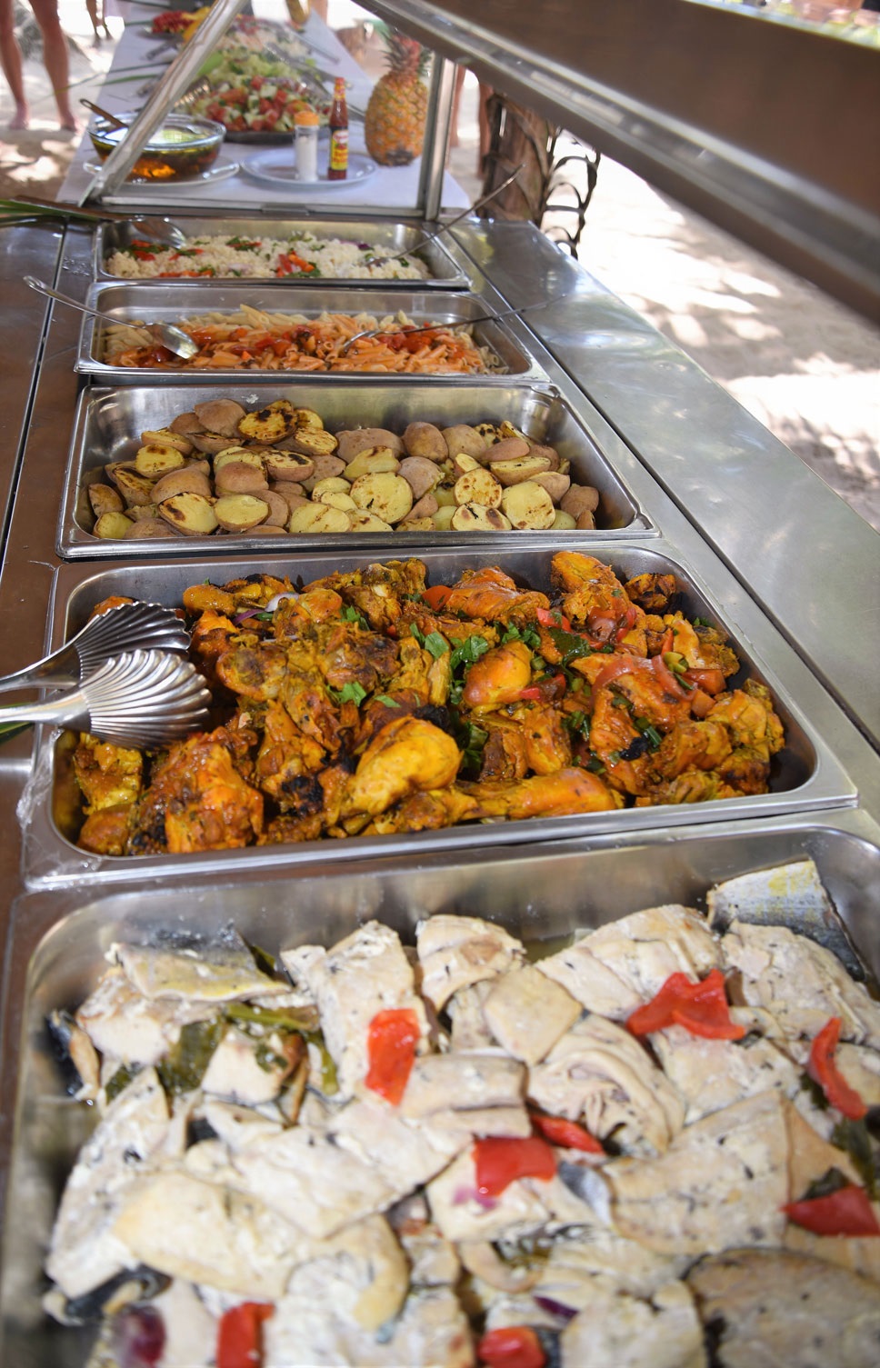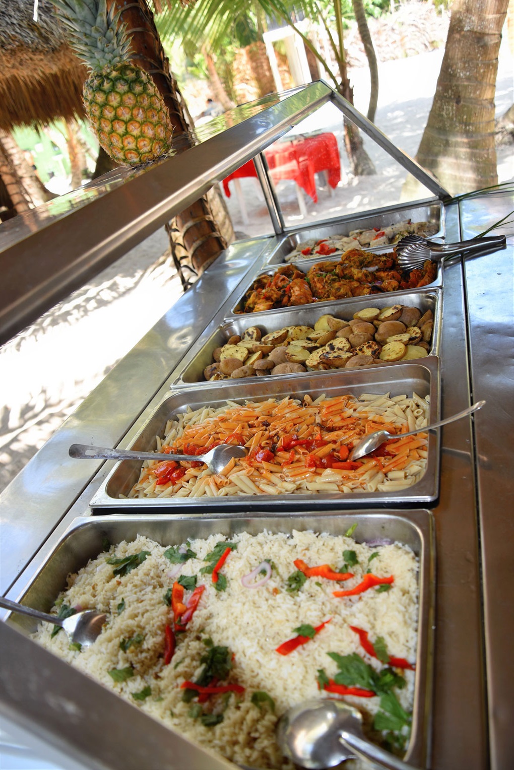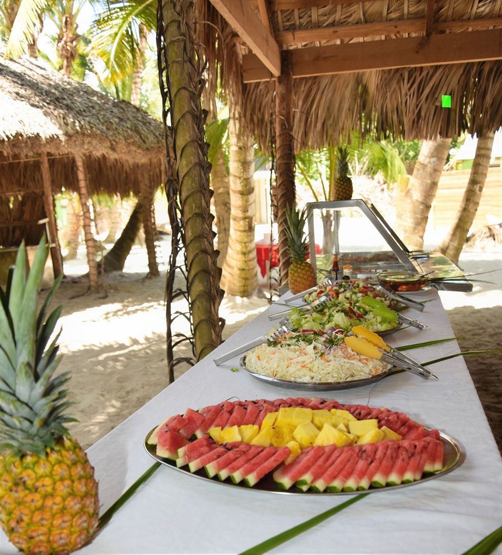 大约13:00-14:00点,我们建议您在海边的棕榈树下享用美味的国际自助餐, 以及您可以倾听大海的声音。
