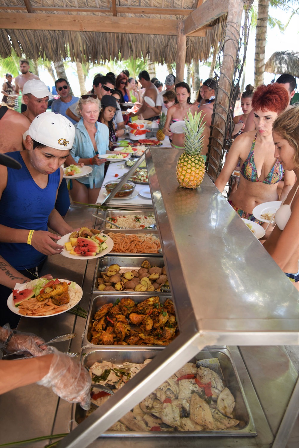 9:00-10:00点我们从Bayahibe村出发,乘双体船到Saona岛的专属沙滩。然后我们会参加船上聚会,听听音乐,跳舞,喝酒。