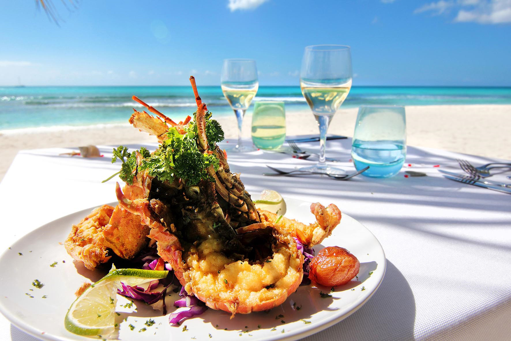 大约13:00-14:00点,我们建议您在海边的棕榈树下享用美味的国际自助餐, 以及您可以倾听大海的声音。