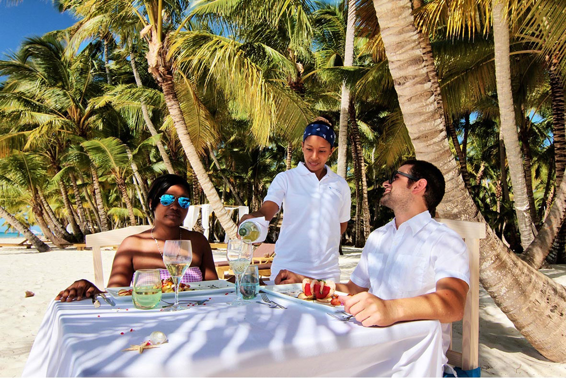 9:00-10:00点我们从Bayahibe村出发,乘双体船到Saona岛的专属沙滩。然后我们会参加船上聚会,听听音乐,跳舞,喝酒。